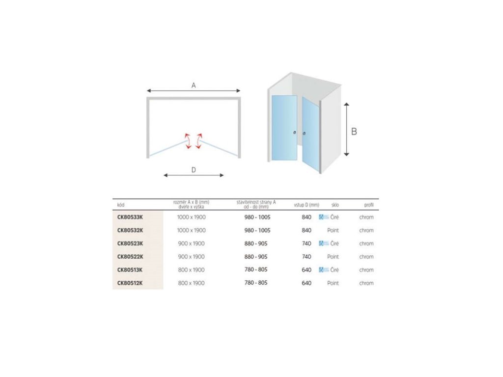 Náhradní sprchové dveře lítací, levé, pro CK80533K