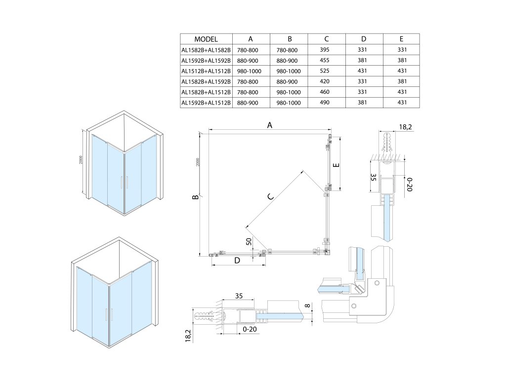 ALTIS BLACK obdélníkový sprchový kout 900x800 mm, L/P varianta, rohový vstup, čiré sklo