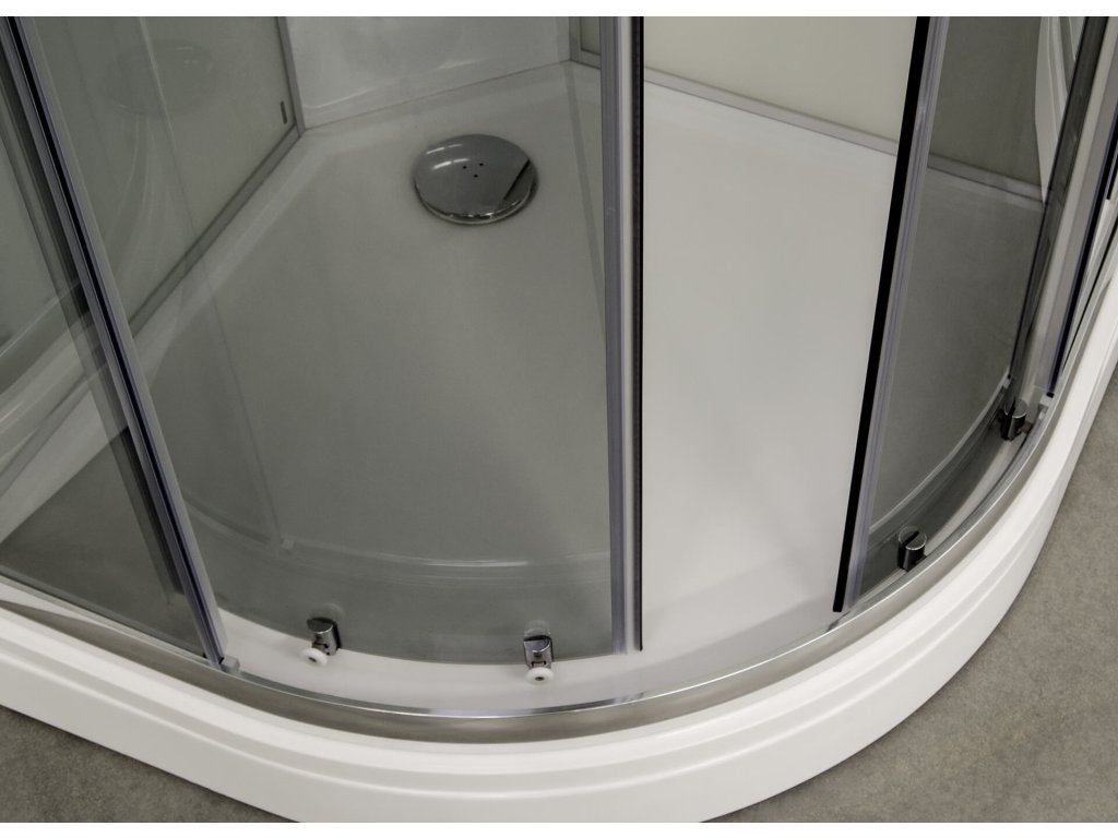 Sprchový box ARTTEC BRILIANT MODEL 1 šedý, vlastní výroby, s posuvnými dveřmi čtvrtkruhový se vyznačuje vysokou kvalitou a jednoduchým designem. Nabízí vše, co potřebujete k pohodlnému každodennímu sprchování: baterii s ruční sprchou a držákem, poličku a vaničku z litého mramoru.