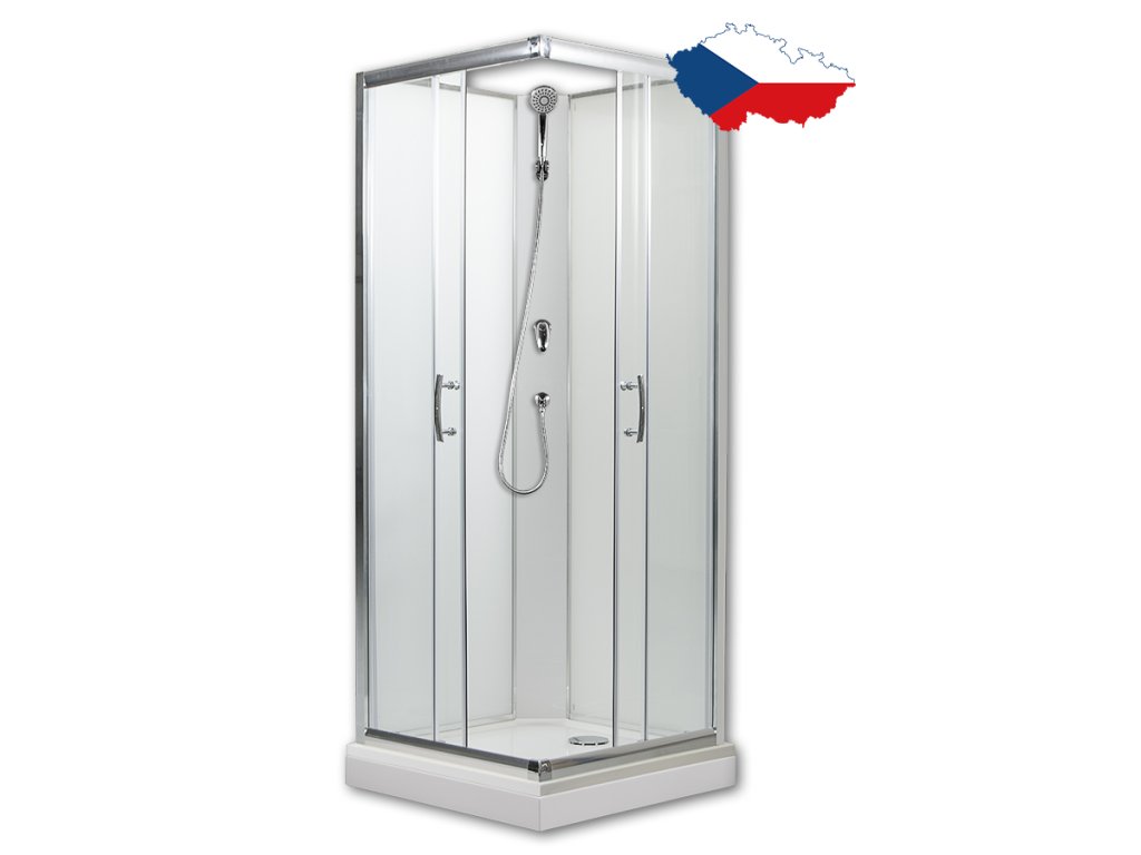 Sprchový box ARTTEC SMARAGD 80 MODEL 1 clear, vlastní výroby, s posuvnými dveřmi čtvercový se vyznačuje vysokou kvalitou a jednoduchým designem. Nabízí vše, co potřebujete k pohodlnému každodennímu sprchování: baterii, ruční sprchu s držákem a vaničku z litého mramoru.