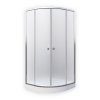 Čtvrtkruhový sprchový kout s dvoudílnými posuvnými dveřmi v setu se sprchovou vaničkou. Výška 1900 mm, rozměr 900×900 mm, rádius 550 mm. Stabilní hliníkové profily, které nepodléhají korozi, jsou v barvě BRILLANT (leštěný hliník). Bezpečnostní rastrované sklo MATT GLASS o síle 4 mm.
