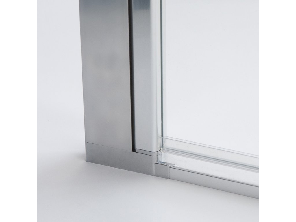 Sprchové dveře mají magnetické těsnění, díky kterému se dovírají téměř samy. Na spodu dveří nalezneme také těsnící silikonový praporek, zamezující úniku vody ze sprchového koutu. Leštěné hliníkové profily v provedení Stříbro a kvalitní chromované madlo ze slitiny zamak jsou ozdobou sprchových dveří. Výplň bezpečnostních skel nabízíme v nadčasovém transparentním provedení. Přesná výška včetně kotvících elementů je 1950 mm.