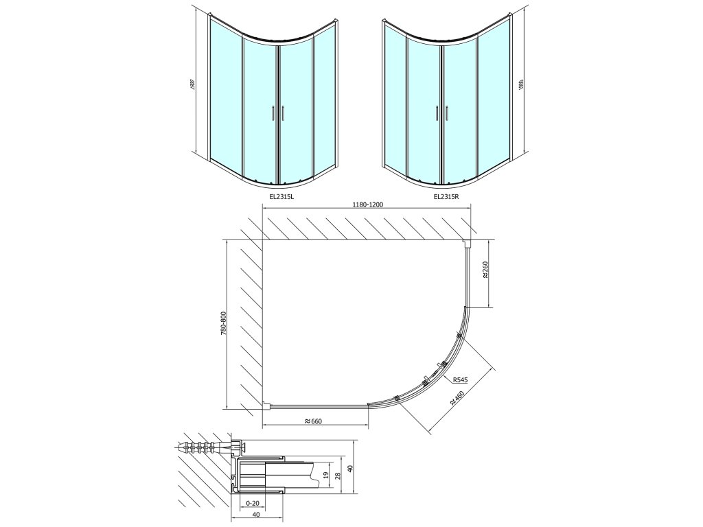 EASY čtvrtkruhová sprchová zástěna 1200x800mm, L/R, čiré sklo