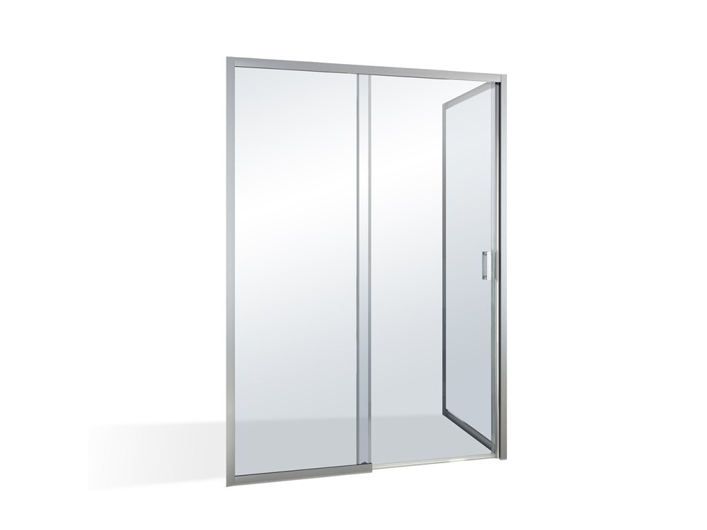 Posuvné sprchové dveře LYG2 v kombinaci s pevnou stěnou LYSWG. Posuvné dveře nabízíme v rozměrech 1200, 1400 a 1600 mm v pravé i levé variantě. Pevnou stěnu nabízíme v šířce 800 mm.