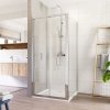 Hliníkové profily v barvě chrom, zalamovací dveře a pevný díl, sklo čiré, síla skla 6 mm, čtverec, výška 1900 mm.