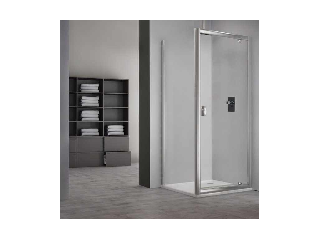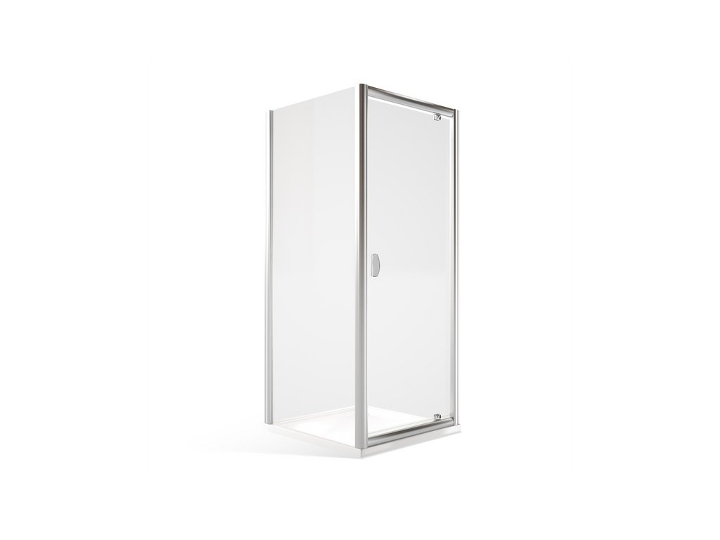 Jednokřídlé otočné sprchové dveře v kombinaci s pevnou stěnou. Výška 2000 mm. Rozměry 800 / 900 / 1000 mm. Možnost vytvoření čtvercového nebo obdélníkovitého sprchového koutu. Bezpečnostní čiré sklo Transparent o síle 6 mm, nekorodující stabilní hliníkové v barvě Brillant. Skleněné výplně jsou ZDARMA ošetřeny technologií RothETC, která brání usazování vodního kamene.