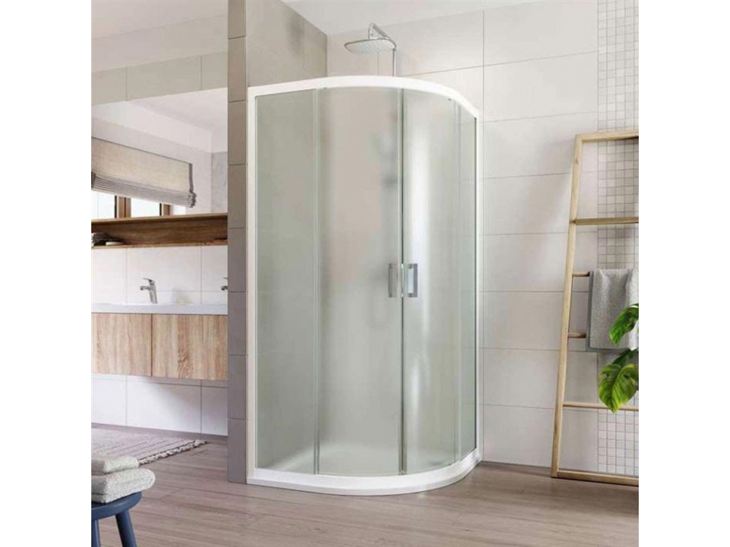 Hliníkové profily v barvě bílé, dveře posuvné, sklo Point, síla skla 6 mm, čtvrtkruh, rozměr 900 x 900 mm, výška 1900 mm vč. vaničky z litého mramoru a sifonu