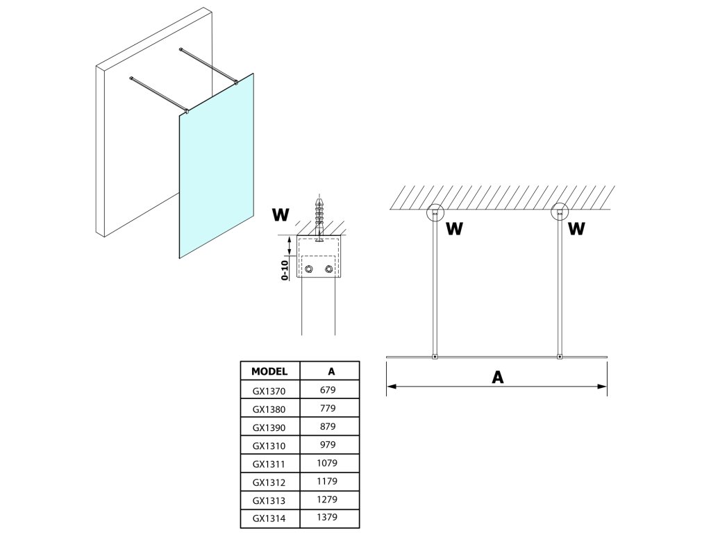 VARIO BLACK jednodílná sprchová zástěna do prostoru, kouřové sklo, 900 mm