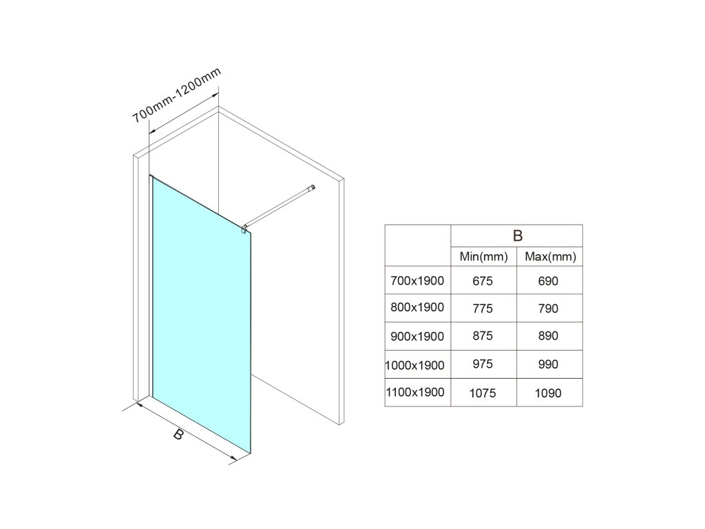 WALK-IN zástěna jednodílná k instalaci na zeď, 700x1900 mm, sklo Brick