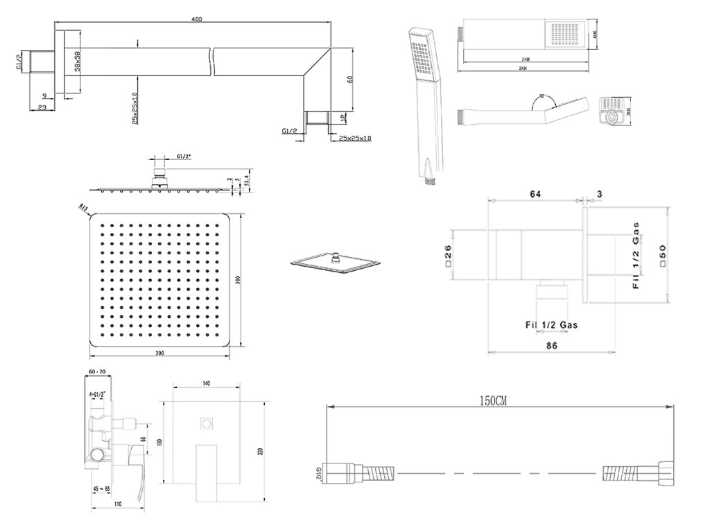 GINKO podomítkový sprchový set s pákovou baterií, 2 výstupy, chrom