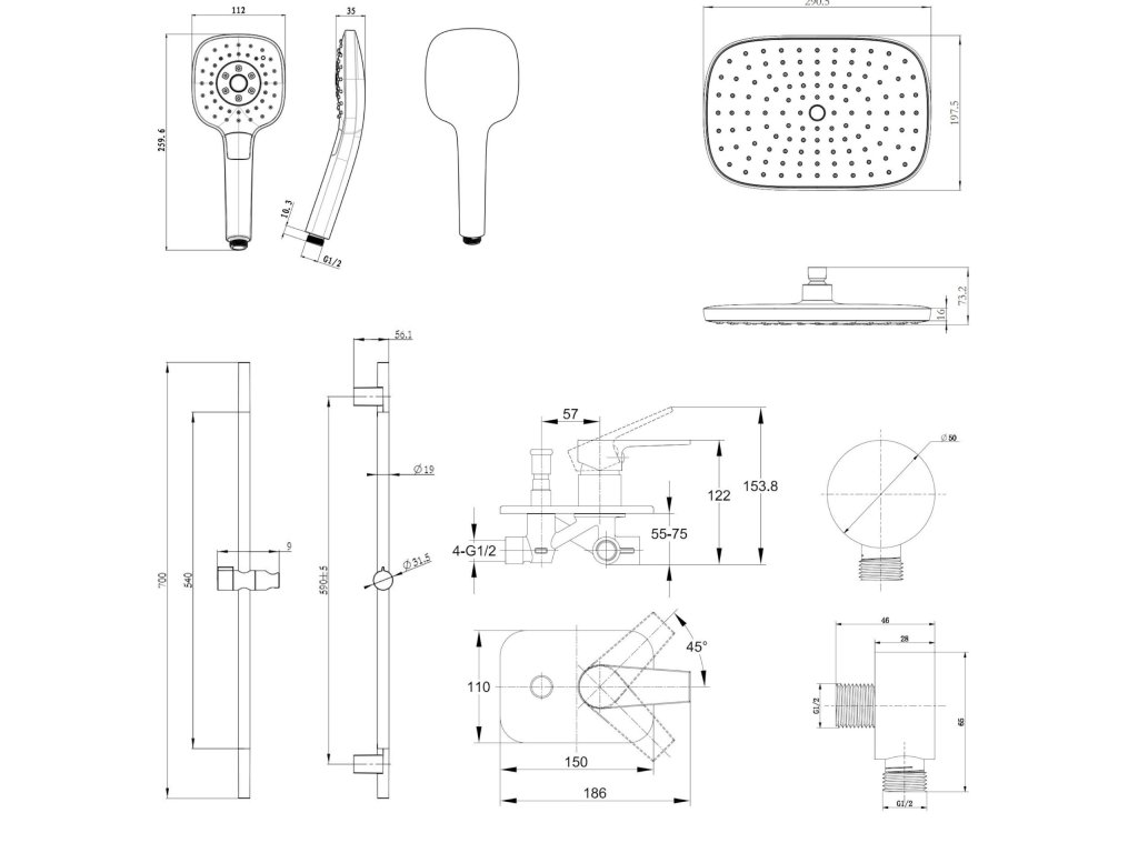 - rozměr sprchy 290 x 198 mm