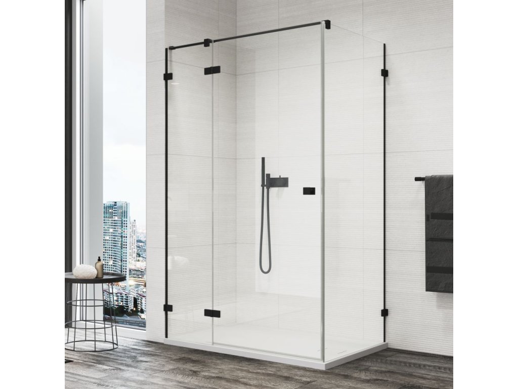 Boční stěna Annea Black s L-kováním od RONAL se vyznačuje nadčasovou jednoduchostí a maximálním komfortem. Jedná se o kolekci BLACK LINE - všechny pohledové díly jsou v matné černé barvě. Boční stěnu s L-kováním lze kombinovat s dveřmi s L-kováním AN13W. 6mm bezpečnostní čiré sklo s antiplakovou úpravou Aquaperle. Na fotografii je vodorovná vzpěra SMGTA.06.1500 - za příplatek. Standardně je dodávaná rohová vzpěra. 5mm prahová lišta.