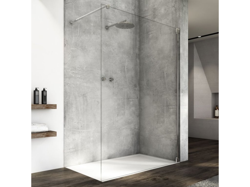 Walk-in zástěna CADURA – pevná stěna samostatná s vyrovnávacím profilem je aktuálním trendem pro moderní koupelny. 6mm bezpečnostní sklo je pokryto antiplakovou úpravou AQUAPERLE pro eliminaci vodního kamene na skle Walk-in zástěny. Celková výška včetně vodorovné vzpěry je 2024 mm. Walk-in zástěnu CAT4 lze použít samostatně nebo v kombinaci s boční stěnou CAT3. Všechny pohledové dílky jsou v aluchromovém provedení. Čiré sklo.