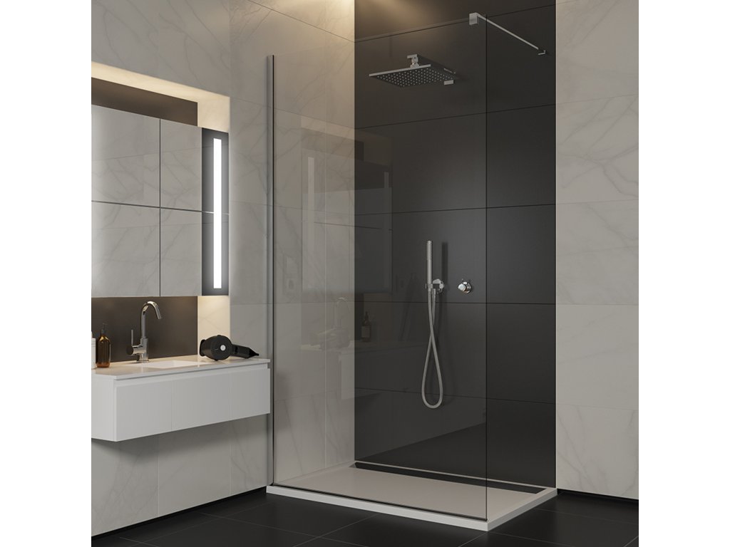 Walk-in zástěna EASY od společnosti RONAL s vyrovnávacím profilem a nadstandardní výškou 225 cm! Kvalitní materiály profilů i vzpěry a též 8mm bezpečnostní čiré sklo s antiplakovou úpravou Aquaperle jsou nespornou výhodou Walk-in zástěny EASY STR4PX. Walk-in zástěna dodávána včetně vodorovné vzpěry 1250 mm (lze zkrátit), celková výška včetně vodorovné vzpěry 2267 mm. Zástěnu lze namontovat vlevo i vpravo. Včetně podlahové lišty v barvě aluchrom. Walk-in zástěnu lze kombinovat s další Walk-in zástěnou STR4PX - nutné doobjednat spojovací díl pro spojení 2 vodorovných vzpěr VT90.10. Za příplatek lze zakoupit elegantní stojan s poličkami a držákem ručníku: KASW.50.1000 (2 poličky, 1 mýdlenka) nebo KASF.50.1000 (1 držák ručníku, 2 poličky, 1 mýdlenka). Ke stojanu je možné objednat i úložný box včetně krytu - KABC.50.