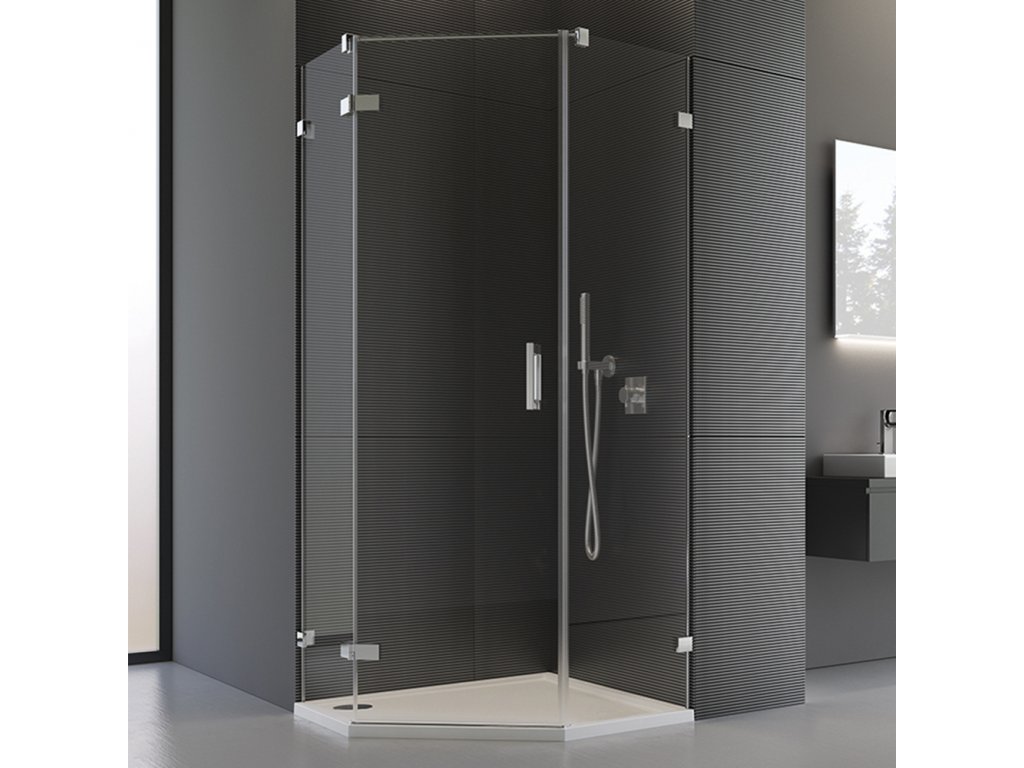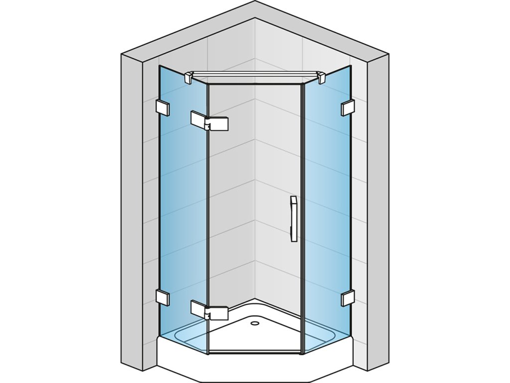 Boční stěna od společnosti RONAL splňuje vysoké nároky na design a individuální řešení koupelny. Chromované L-kování, 8mm bezpečnostní sklo s antiplakovou úpravou. Dodáváno se stabilizační vzpěrou. Těsnicí U-profil 50552. Upozornění: pro kompletní pětiúhelník je třeba objednat 2 boční stěny.
