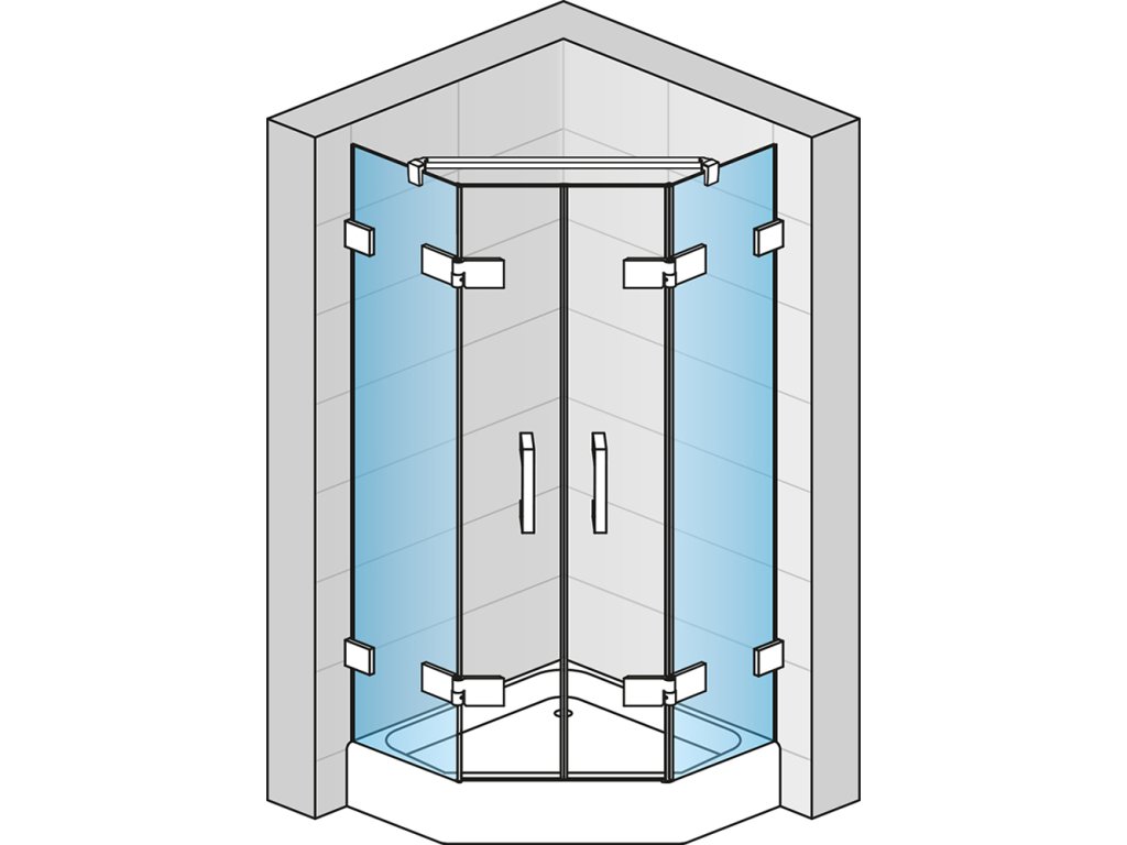 Boční stěna od společnosti RONAL splňuje vysoké nároky na design a individuální řešení koupelny. Chromované L-kování, 8mm bezpečnostní sklo s antiplakovou úpravou. Dodáváno se stabilizační vzpěrou. Těsnicí U-profil 50552. Pro kompletní pětiúhelník je třeba objednat 2 boční stěny.
