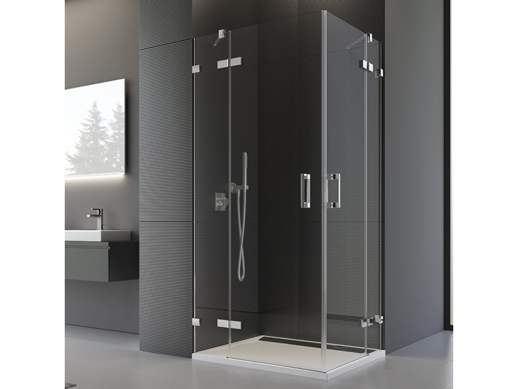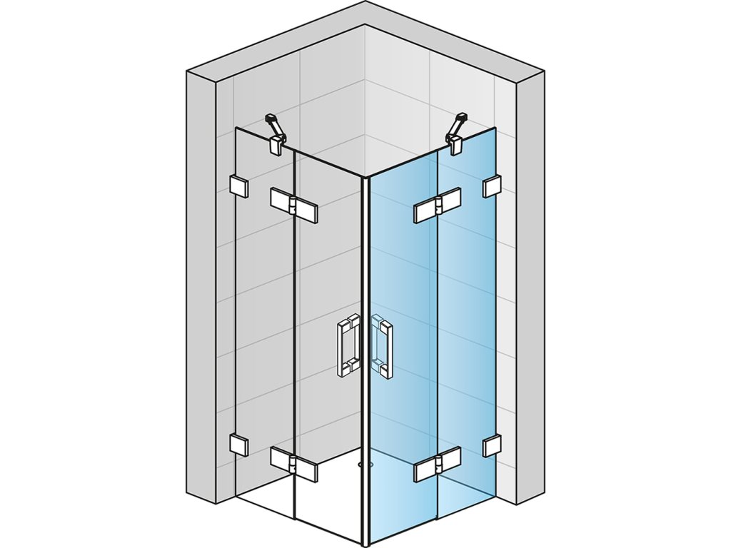 Sprchový kout od společnosti RONAL splňuje vysoké nároky na design a individuální řešení koupelny. Kvalitní materiály jako masivní chromované panty (na vnitřní straně zapuštěné) a kování, 8mm bezpečnostní sklo, designové madlo. Magnetické těsnění, těsnicí U-profil 50552, 5mm aluchromová prahová lišta. Včetně dvou rohových vzpěr. Antiplaková úprava skla AQUAPERLE pro snadné čištění. Sprchové dveře se otevírají ven. Pro kompletní rohový vstup je nutné objednat i levé sprchové dveře PUE2G.
