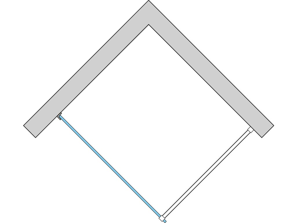 Walk-in zástěna RONAL s 8mm bezpečnostním sklem. Chromované L-kování s těsnicím profilkem. Součástí je stabilizační vzpěra 1250 mm. Antiplaková úprava skla AQUAPERLE pro snadné čištění. Walk-in zástěnu lze vybavit chromovaným držákem ručníku nebo skleněnou poličkou (za příplatek).