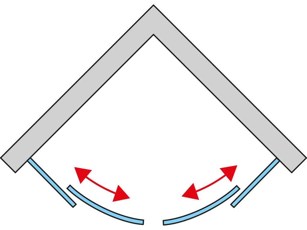 Čtvrtkruh s dvoudílnými posuvnými dveřmi, rádius 550 mm TLSR550800607