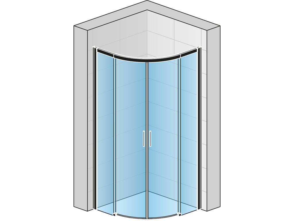 Čtvrtkruh s dvoudílnými posuvnými dveřmi, rádius 550 mm TLSR550900607