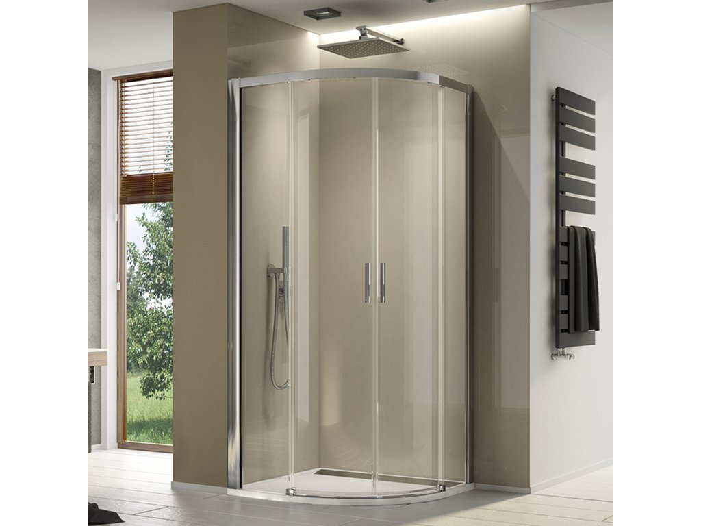 Sprchový kout RONAL TOP-LINE S s měkkými symetrickými tvary. Garance luxusu, komfortu a spolehlivosti. 6mm bezpečnostní sklo s antiplakovou úpravou Aquaperle. Magnetické těsnění, 10mm prahová lišta. Možné odklopení dveří pro snadné čištění. Chromované plastové dílky a madlo. Rádius 550 mm.