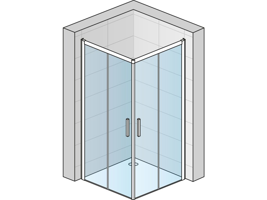 Rohový vstup s dvoudílnými posuvnými dveřmi (bez spodního rámového profilu) TLSAC0700151