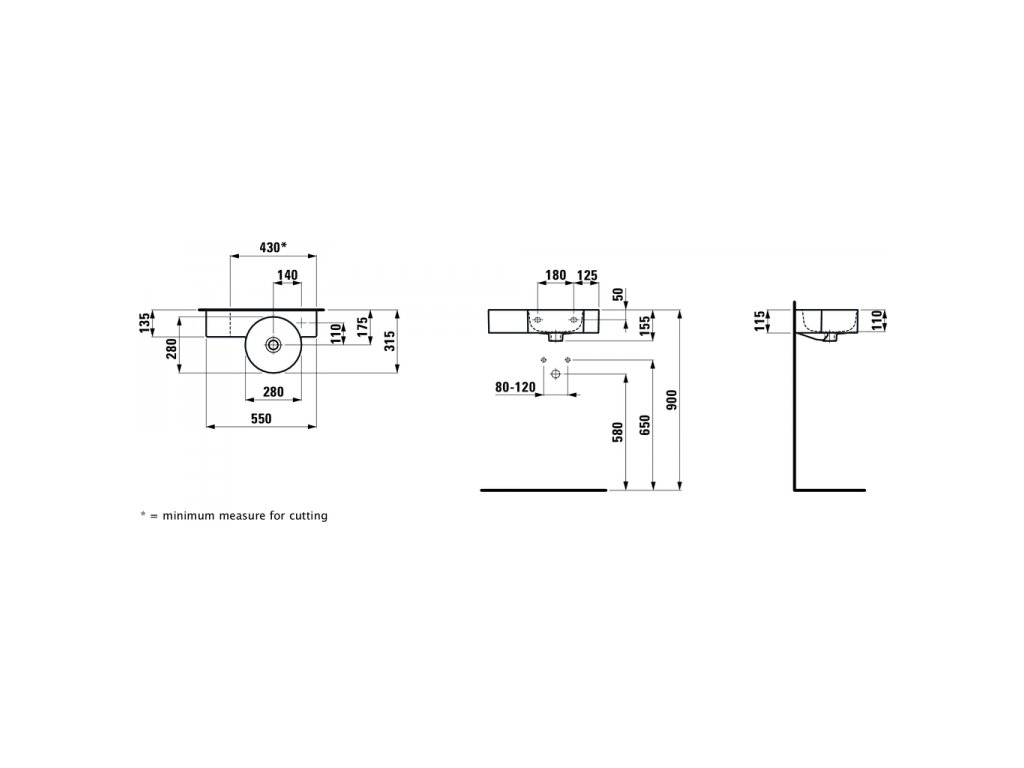 - Minimální šířka řezatelného umyvadla (mm): 430