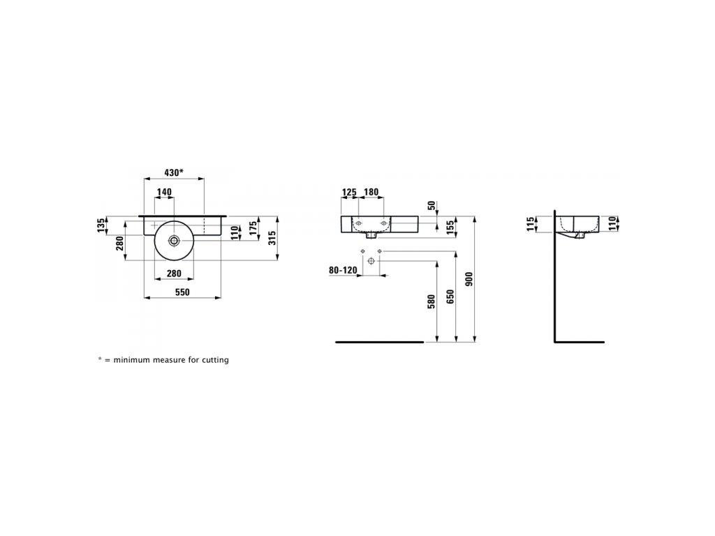 - Minimální šířka řezatelného umyvadla (mm): 430