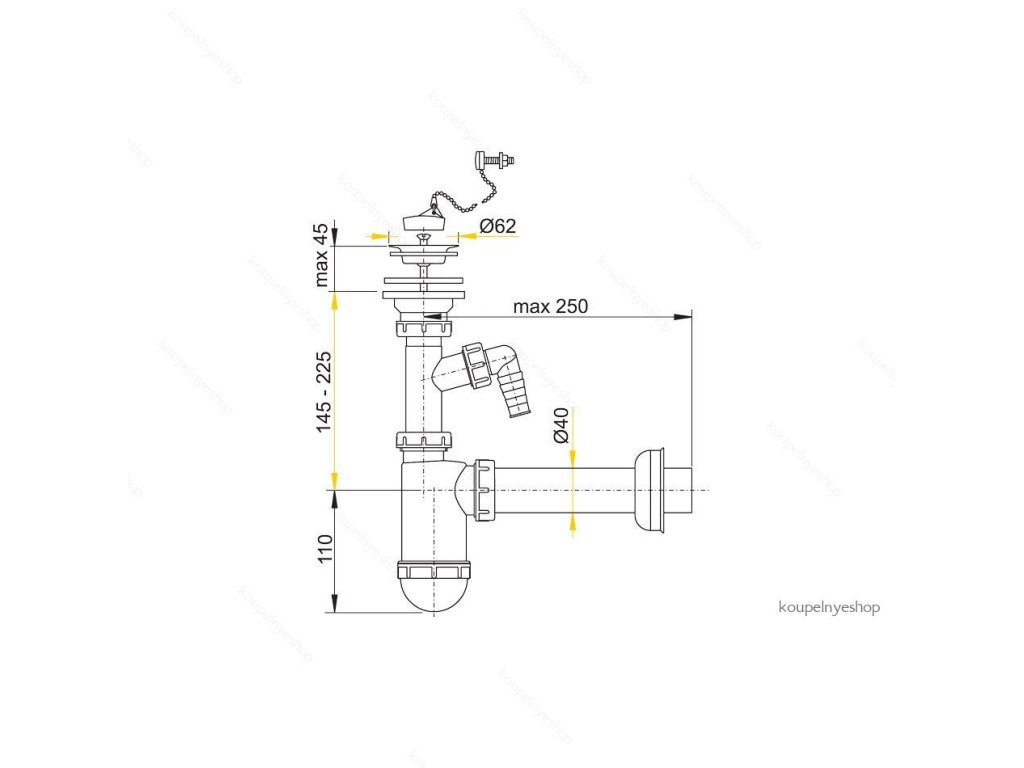 Poznámka: | Sifon umyvadlový DN40 s přípojkou a nerezovou mřížkou DN63, řetízek |