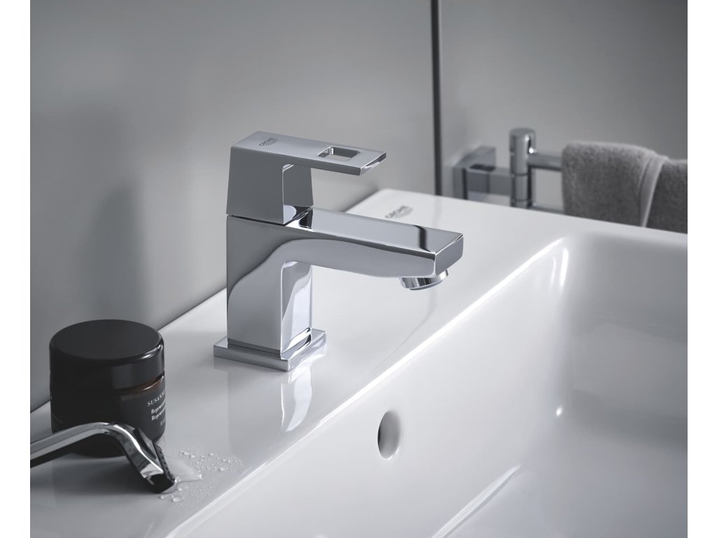 Tato koupelnová baterie z řady Eurocube je ideální volbou do koupelen pro hosty nebo do sklepních místností, které mají k dispozici pouze přípojku studené vody. Baterie je vyrobena v prověřené kvalitě produktů GROHE a jeho výpusť XS je dokonalá pro malá umyvadla. Tento model je dodávaný bez integrovaného řešení odtoku a vyznačuje se tak hladkým tělem s čistým, minimalistickým vzhledem. I v případě, že spustíte proud vody naplno, spotřeba nikdy nepřekročí 5,7 litrů za minutu. Vděčíme za to technologii GROHE EcoJoy. Silikonové trysky SpeedClean, které se nacházejí na výpusti, lze snadno utřít pomocí prstů. Se svým zářivým chromovým povrchem GROHE StarLight bude tato baterie fantastickým doplňkem vaší koupelny nebo toalety.