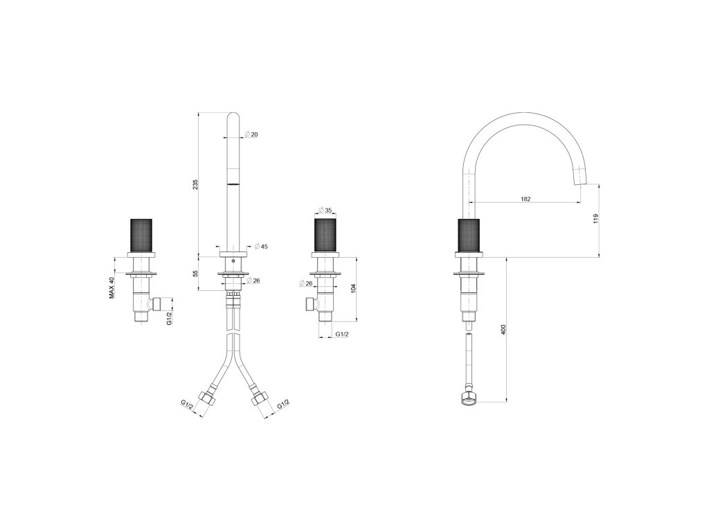 ULTRATAP tříprvková stojánková umyvadlová baterie, černá mat/chrom