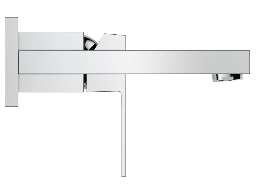 Páková podomítková umyvadlová baterie bez podomítkového tělesa. V hranatém designu. V chromovém provedení.