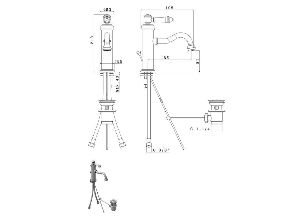 VIENNA stojánková umyvadlová baterie s výpustí, bronz