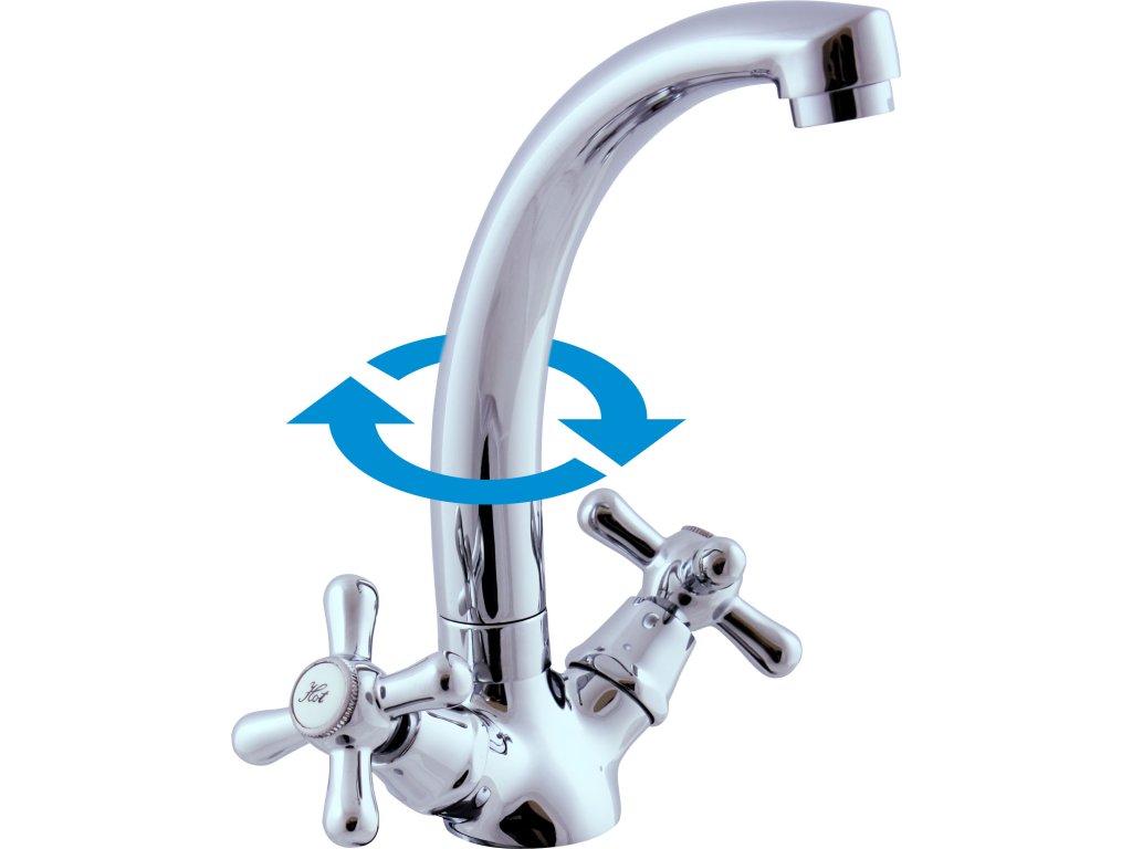 Vodovodní baterie umyvadlová stojánková s otočným ústím.