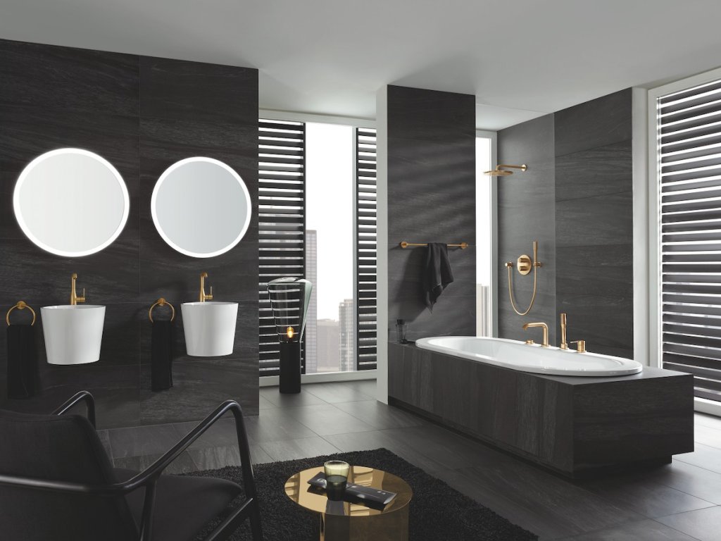 Vysoká umyvadlová baterie GROHE Essence New s otočným raménkem Brushed Cool Sunrise 32628GN1