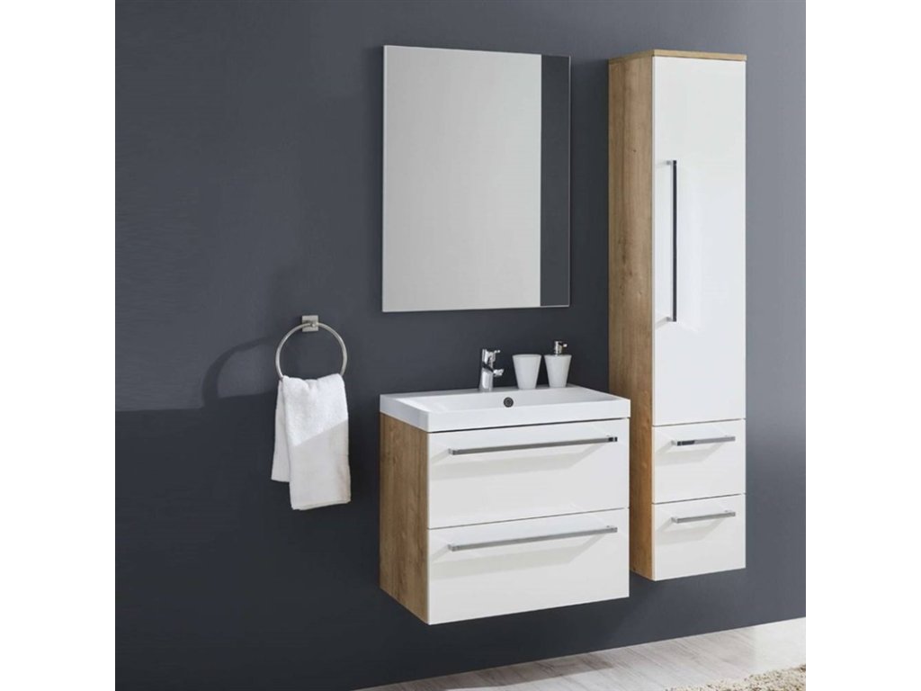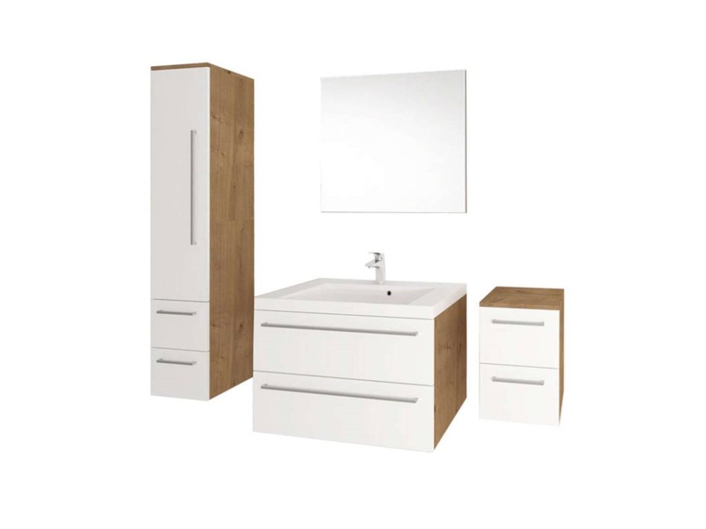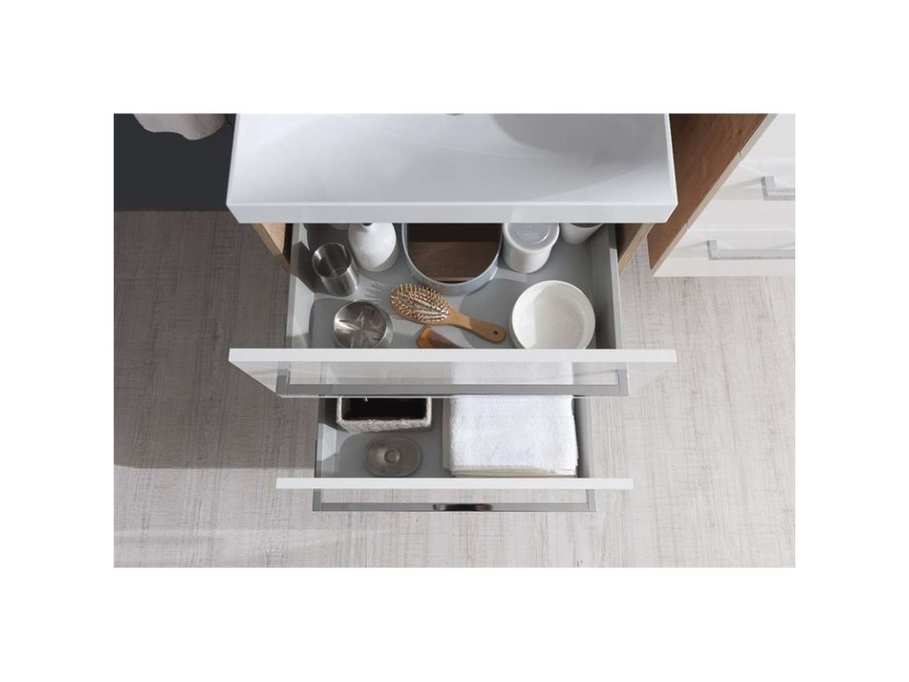 Jednoduchost, efektivnost, elegance. To jsou hlavní společné jmenovatele koupelnového nábytku Bino, který ozdobí každou koupelnu. Díky kombinaci inovací a spolehlivého přístupu, pak vzniká kvalitní a zároveň velmi moderní nábytek. Barevné kombinace bílý lesk, dub Arlington a dub Sand Barbera zajišťují, že bude nábytek ladit do každého typu koupelny. Uživatelsky velmi praktické jsou pak dvě plnovýsuvné zásuvky se samozavíracími pojezdy a tlumením Strong. Skříňka se dodává ve složeném stavu.