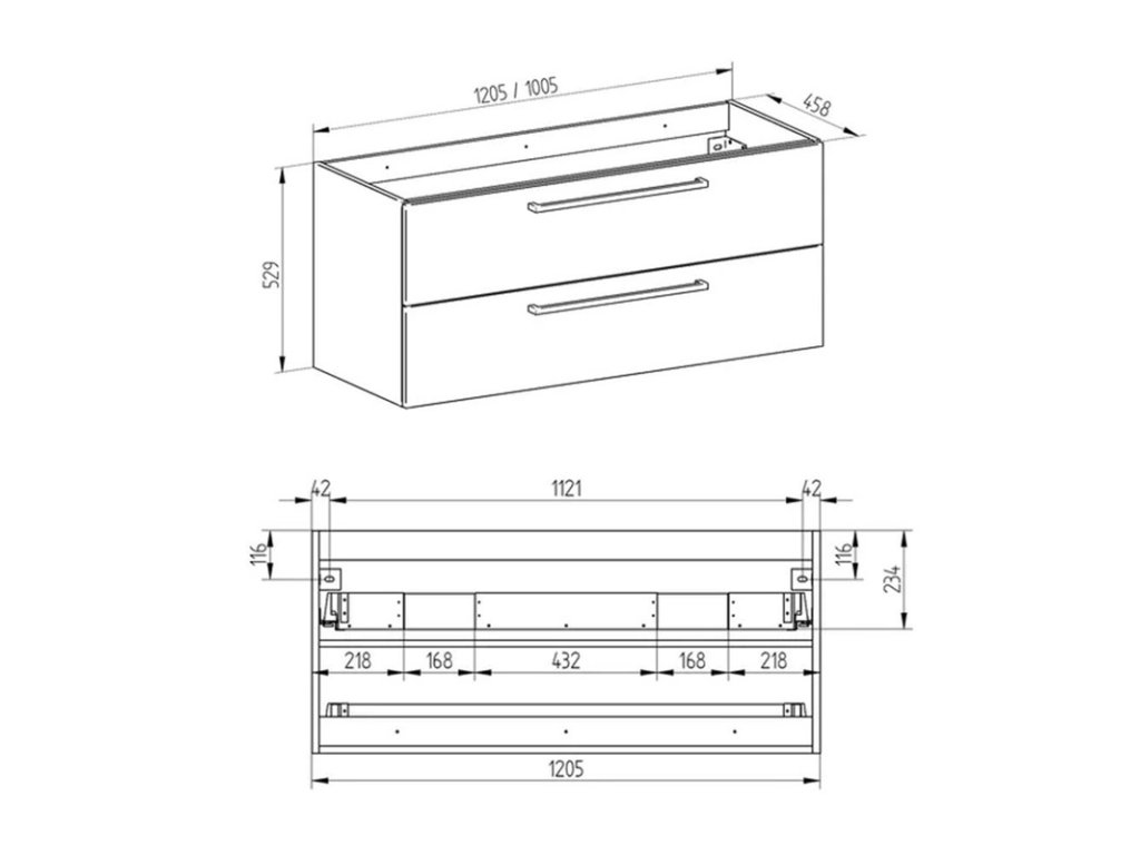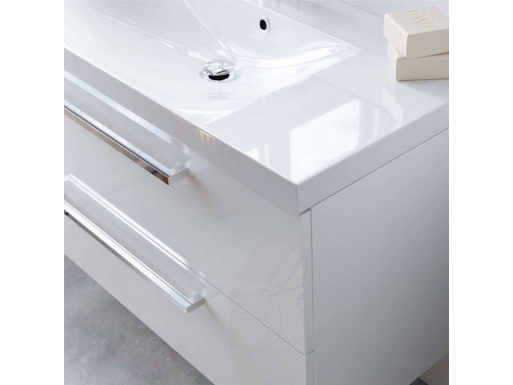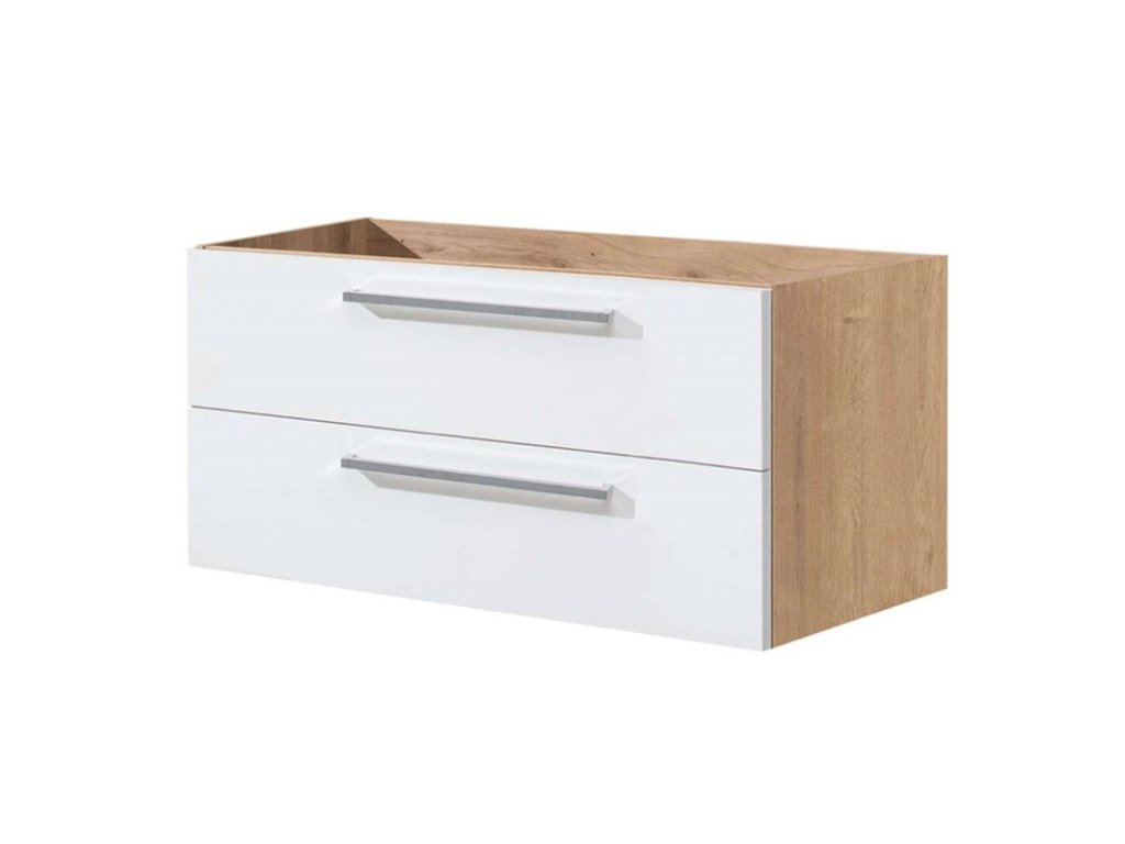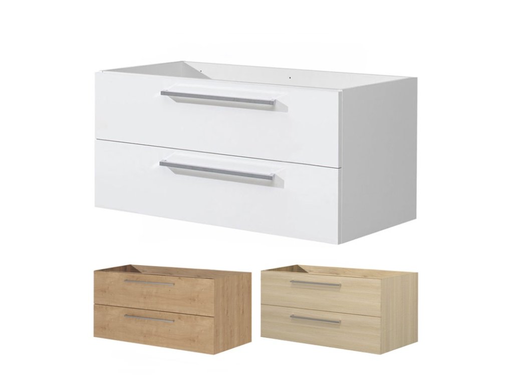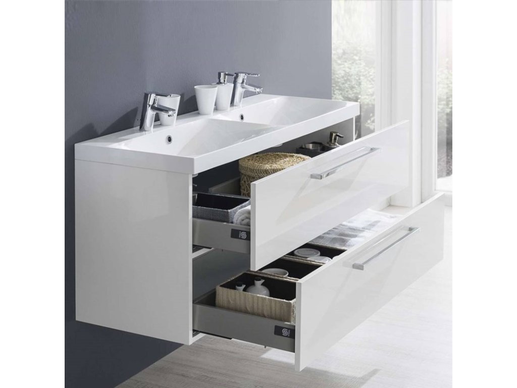 Bino, koupelnová skříňka 1205x528x458 mm, spodní, lesklá bílá, 2 zásuvky. Možno kombinovat s umyvadlem, popř. s koupelnovou deskou na skříňku.