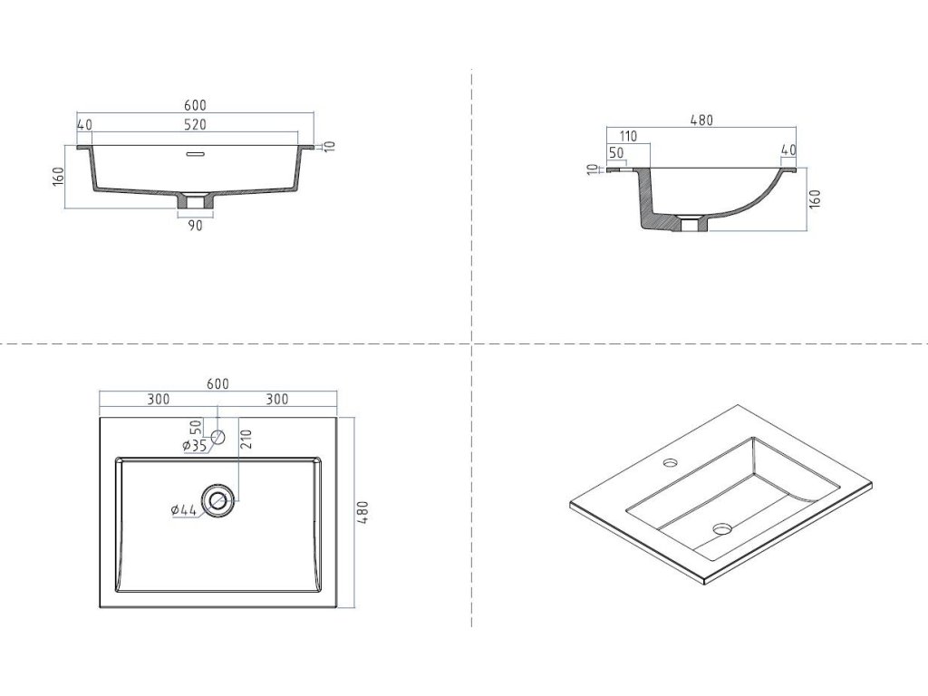 - barva umyvadla: bílá