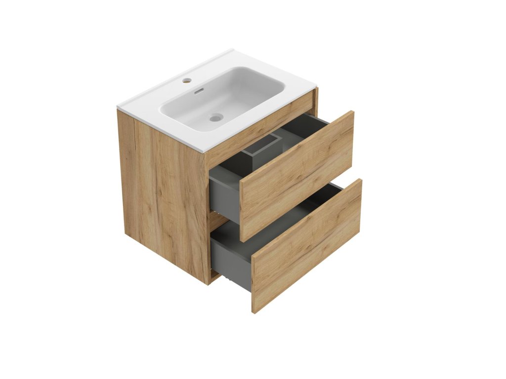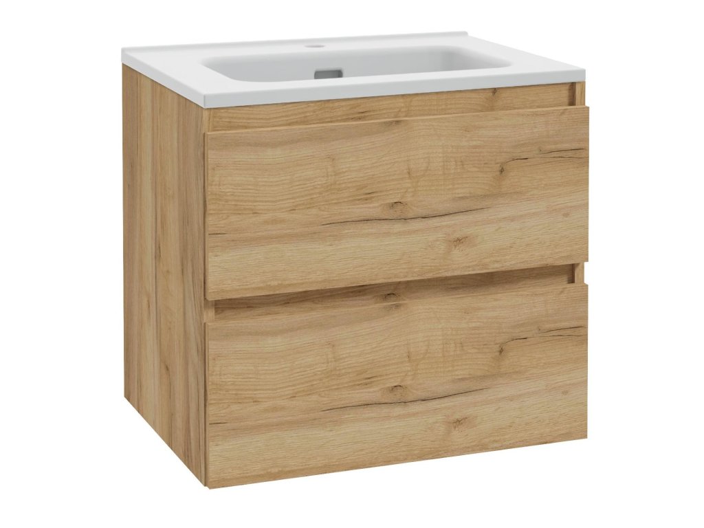 kielle Nefia - Skříňka včetně umyvadla, 60x55x46 cm, 2 zásuvky, zlatý dub