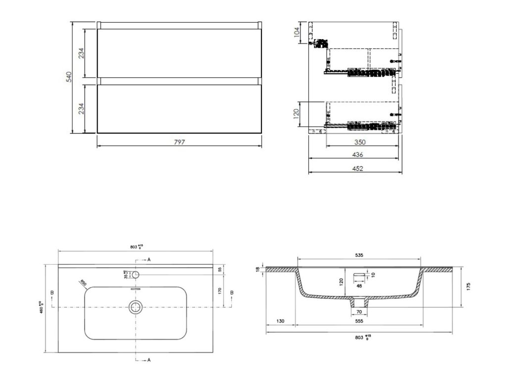 - rozměry skříňky: šířka 800 mm, hloubka 460 mm