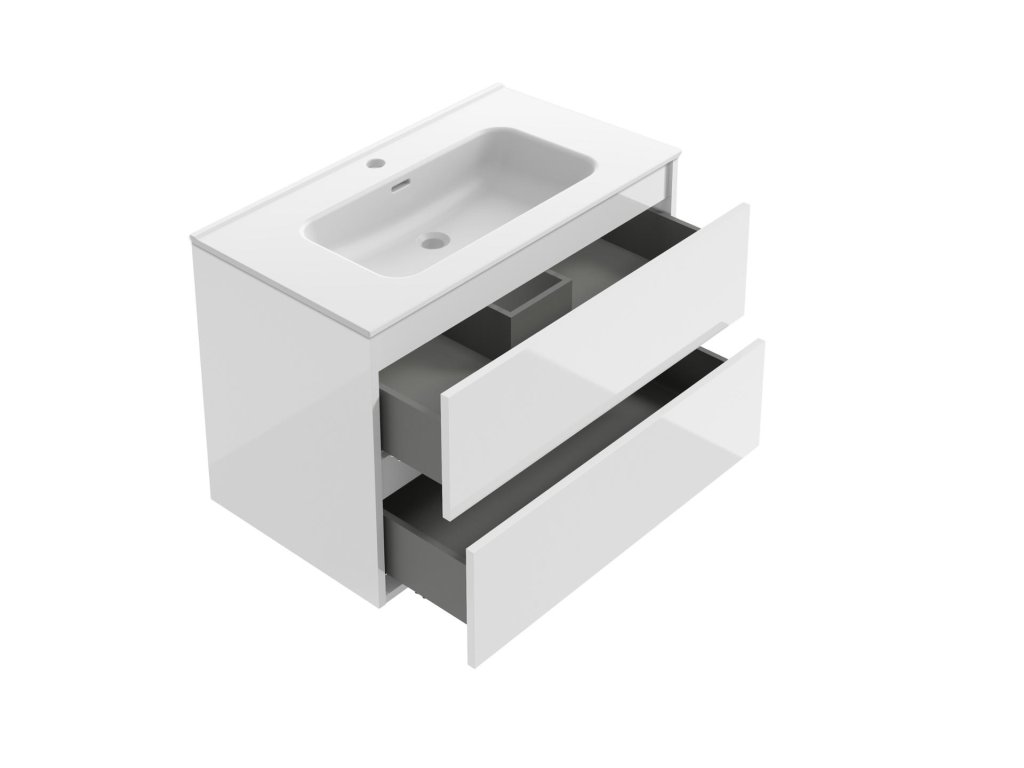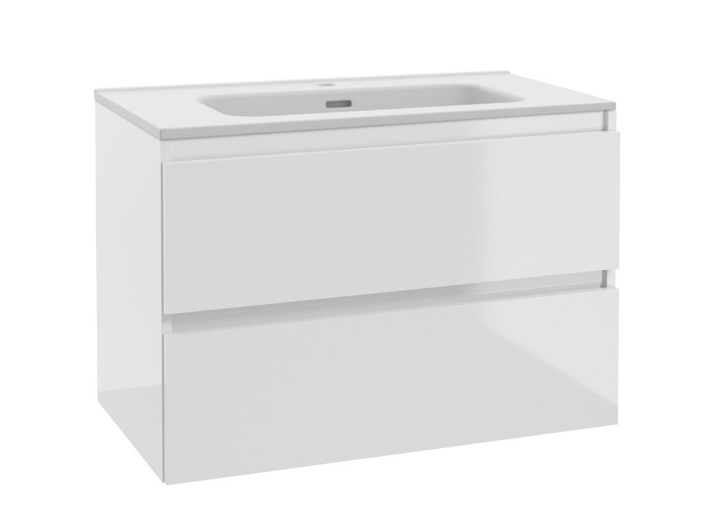 kielle Nefia - Skříňka včetně umyvadla, 80x55x46 cm, 2 zásuvky, lesklá bílá