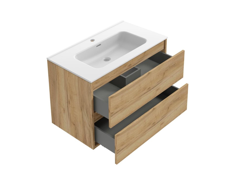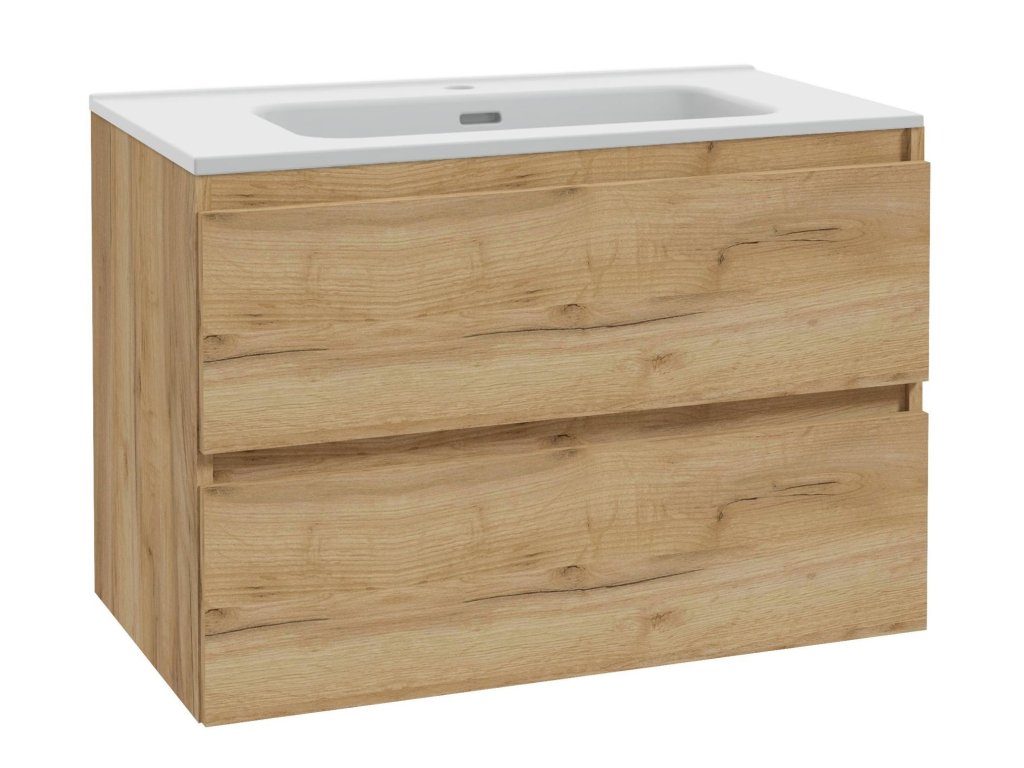 kielle Nefia - Skříňka včetně umyvadla, 80x55x46 cm, 2 zásuvky, zlatý dub