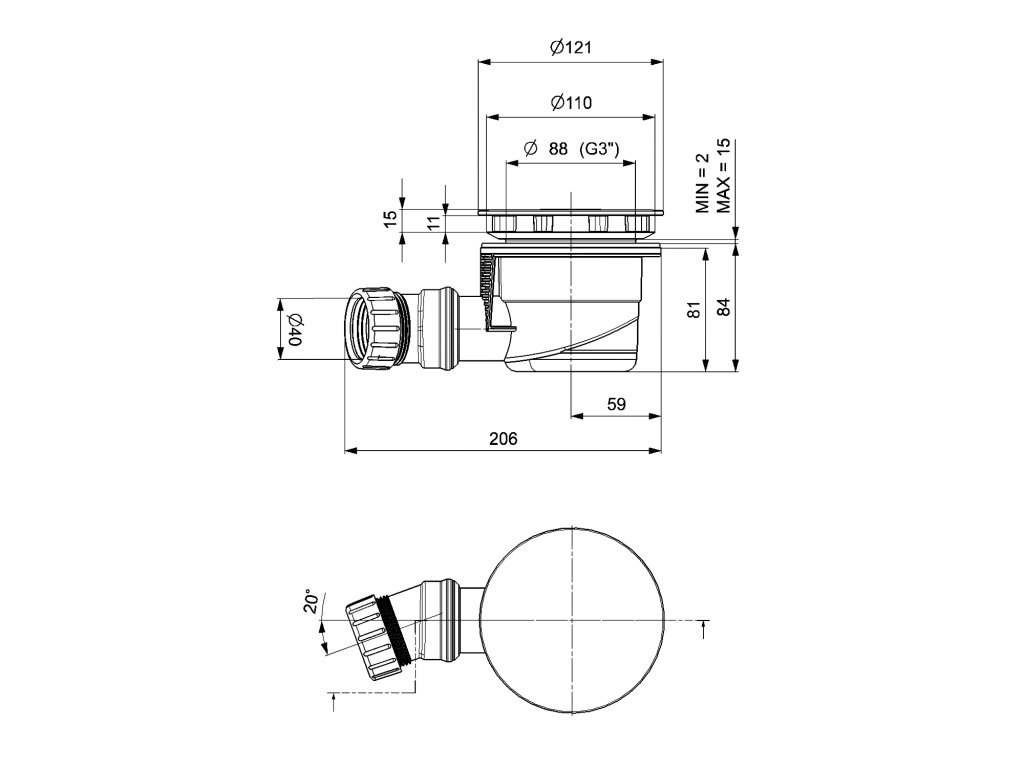 Vaničkový sifon, průměr 90mm, DN40, krytka černá mat