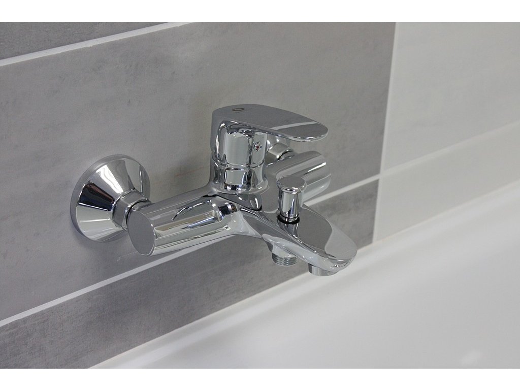 Vodovodní baterie vanová nástěnná se sprchou a pevným držákem.