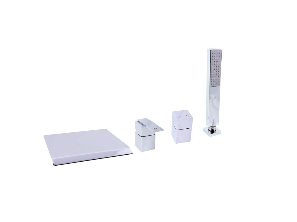 Vodovodní baterie vanová stojánková čtyřotvorová s keramickým přepínačem, samonavíjecí 2m hadicí a sprchou.