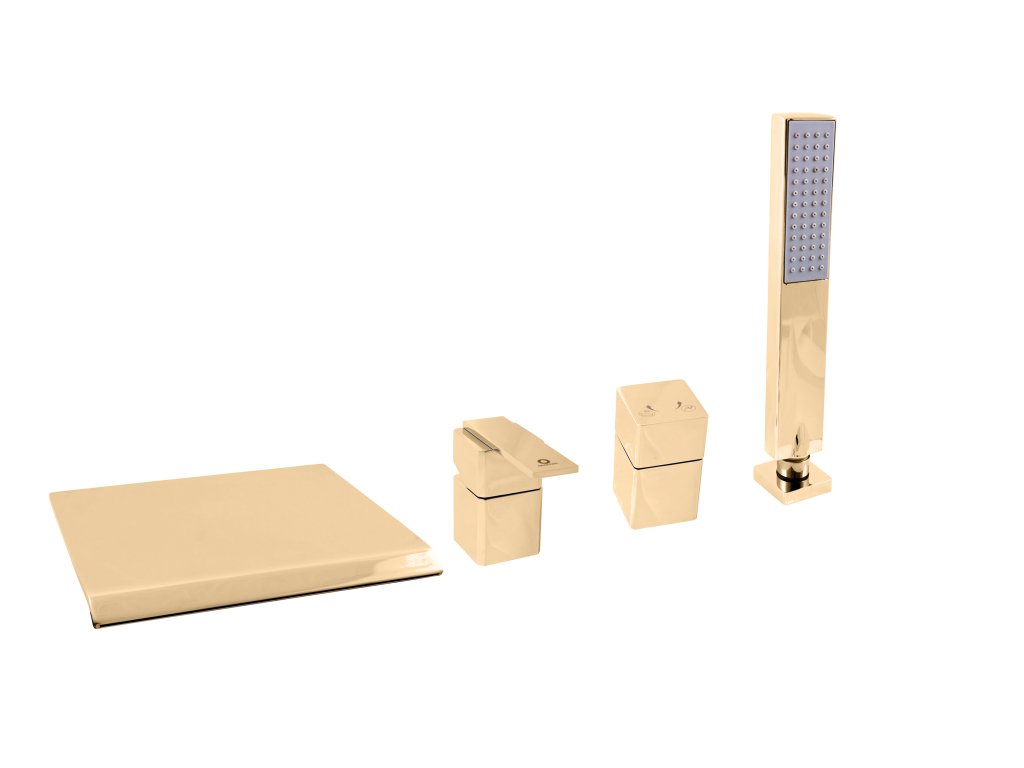 Vodovodní baterie vanová stojánková čtyřotvorová s keramickým přepínačem, samonavíjecí 2m hadicí a sprchou.