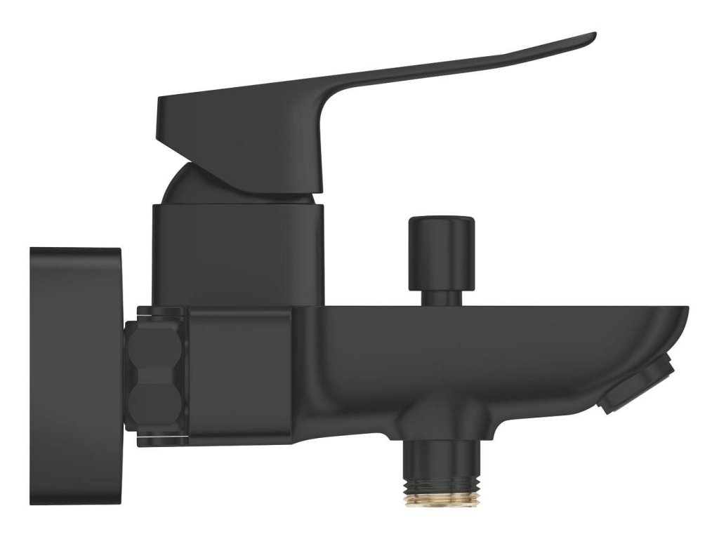 Páková nástěnná vanová baterie bez sprchového setu v černém matném provedení Rozteč baterie 150 mm.S matným povrchem