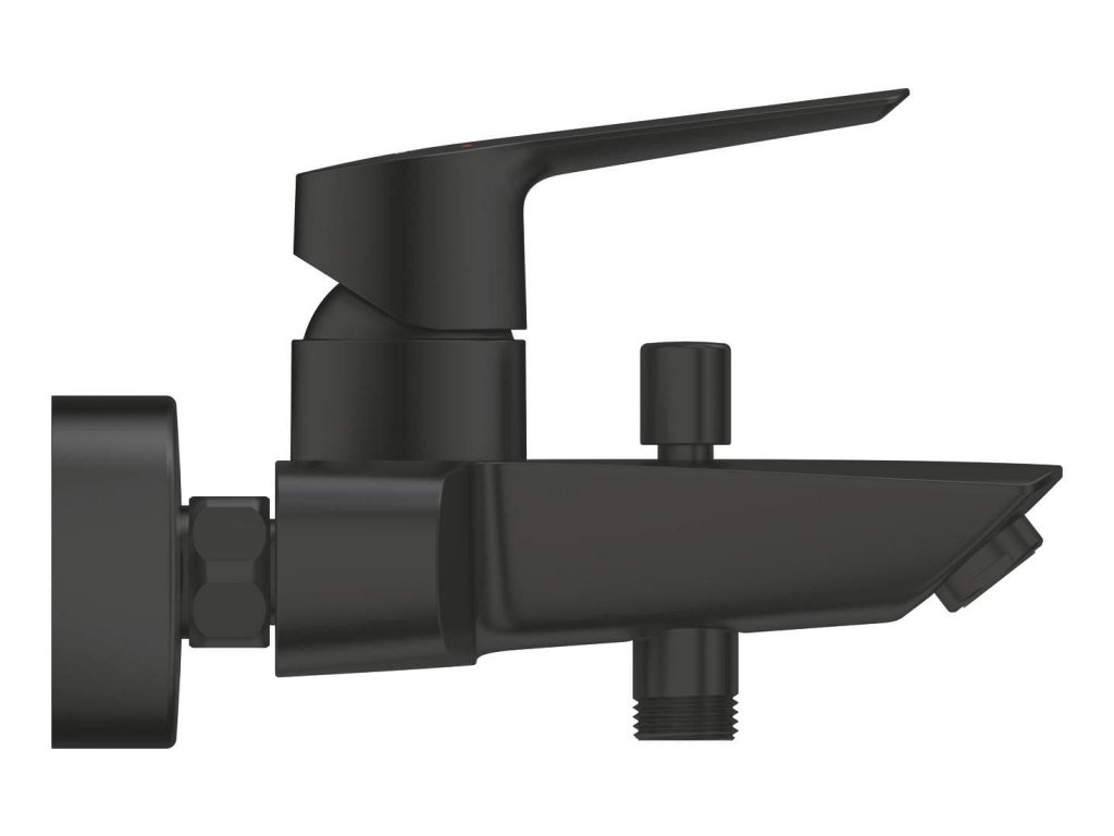 Páková nástěnná vanová baterie bez sprchového setu v barvě černá matná. Rozteč baterie 150 mm. S matným povrchem.