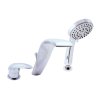 Vodovodní baterie vanová stojánková tříotvorová s přepínačem ve výtoku, samonavíjecí sprchou a 2m hadicí.