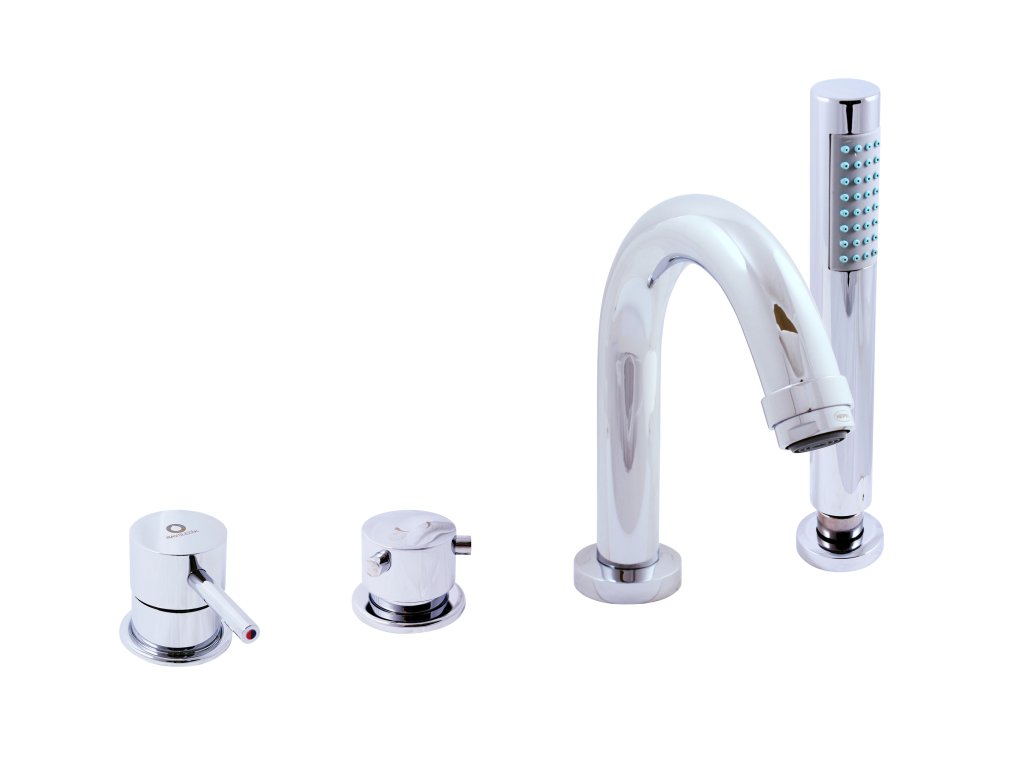 Vodovodní baterie vanová stojánková čtyřotvorová s keramickým přepínačem, samonavíjecí 2m hadicí a sprchou.